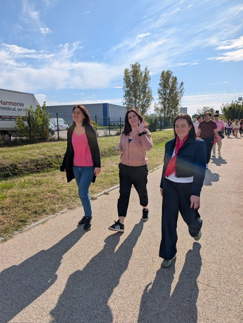 Au programme : de la bonne humeur, des pas déterminés… et du rose partout ! Écharpes, t-shirts, vestes, pantalons : chaque collaborateur·rice a joué le jeu en arborant au moins un vêtement rose pour rappeler l’importance du dépistage et du soutien aux personnes touchées.