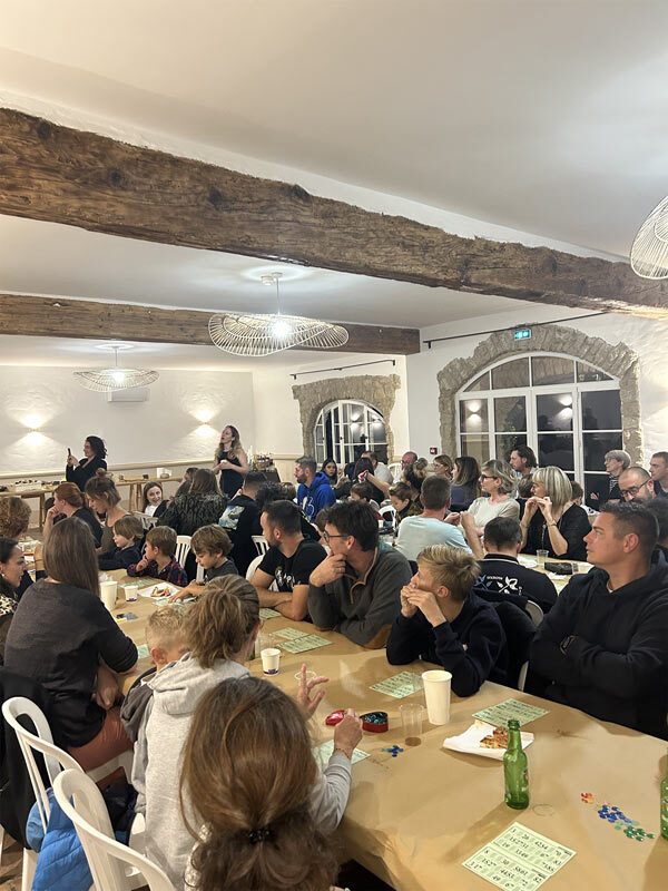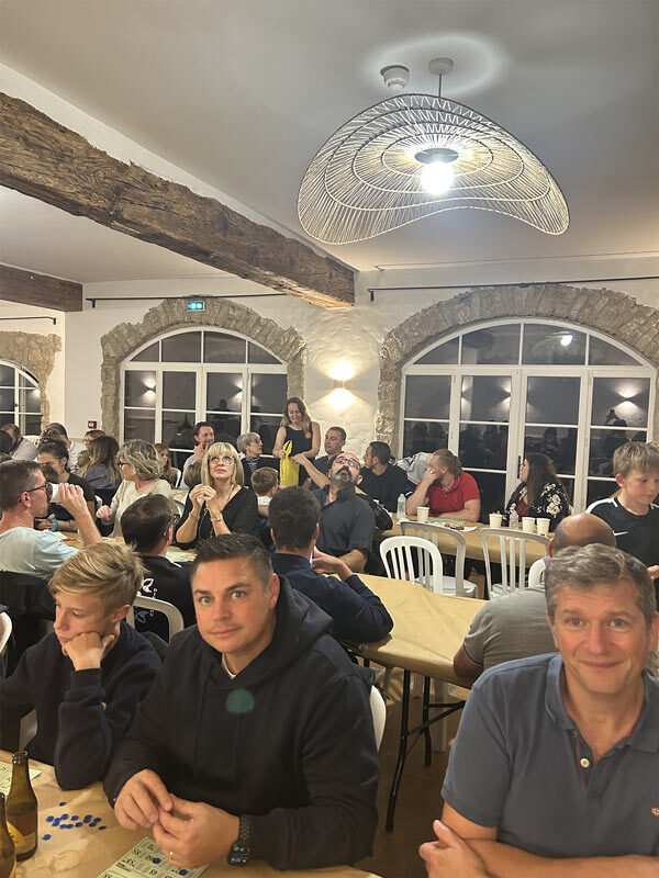 Après avoir bien rempli les ventres, place aux choses sérieuses : le loto démarre à 20h30. Et là, Vincent, notre maître de cérémonie du soir, s’est surpassé ! À chaque numéro tiré, il nous gratifiait d’expressions rigolotes, rendant chaque tirage encore plus vivant.